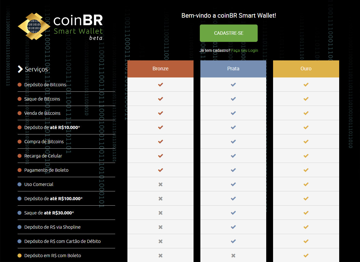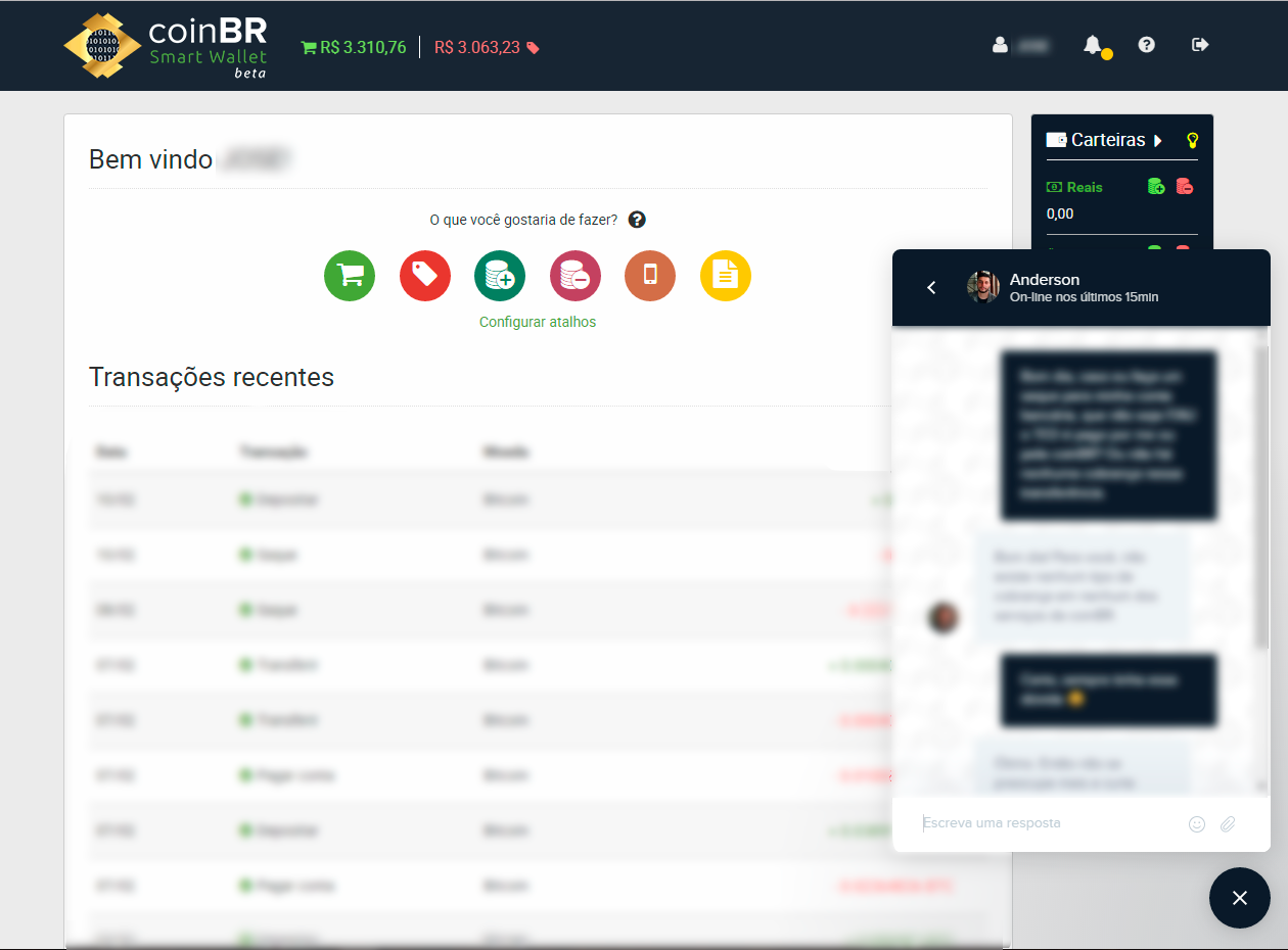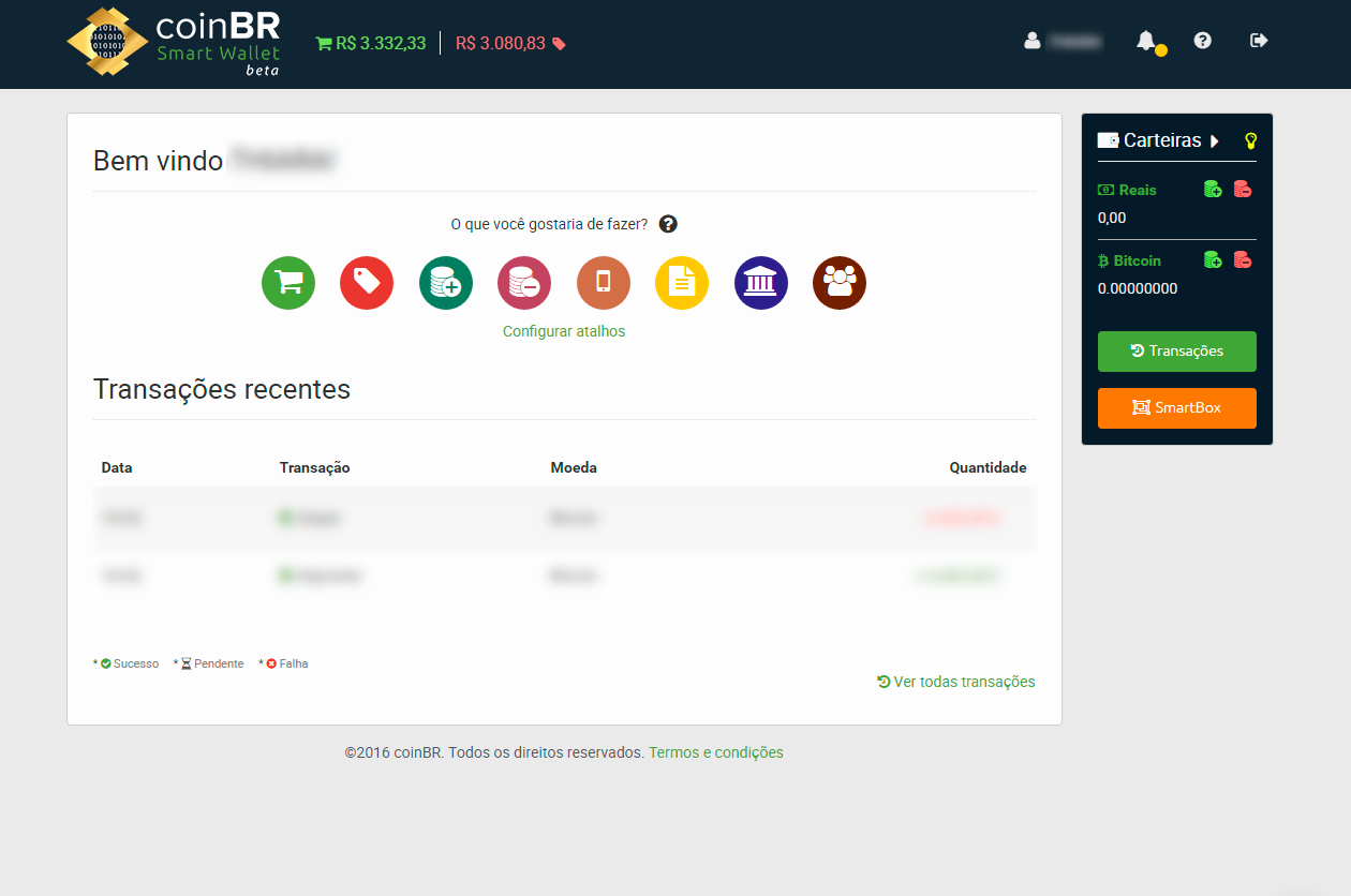 Após isso você já poderá usar todos os serviços oferecidos pela coinBR Smart Wallet: