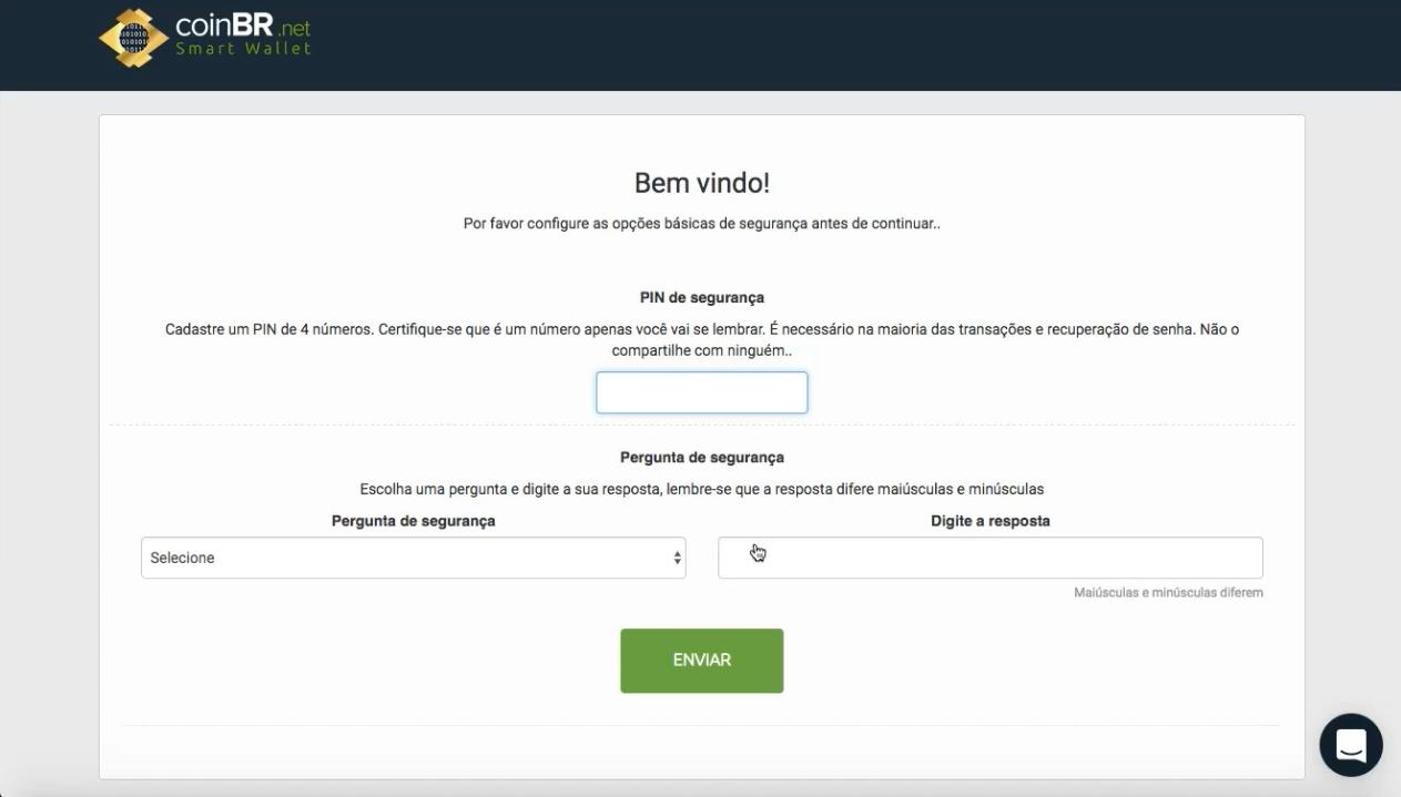 Este PIN de Segurança, será usado na maioria das transações, então atente-se para memorizar, ele poderá ser solicitado também em caso de recuperação de senha juntamente com sua resposta da pergunta de segurança.