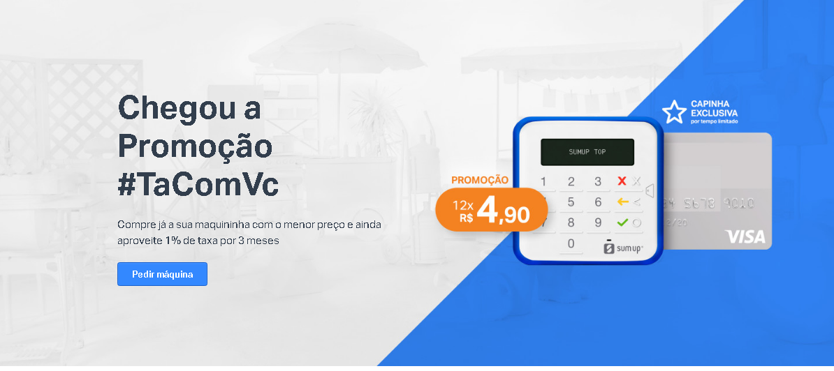 Com a sumup você pode aceitar cartões em suas vendas sem pagar aluguel e agora com um super desconto.